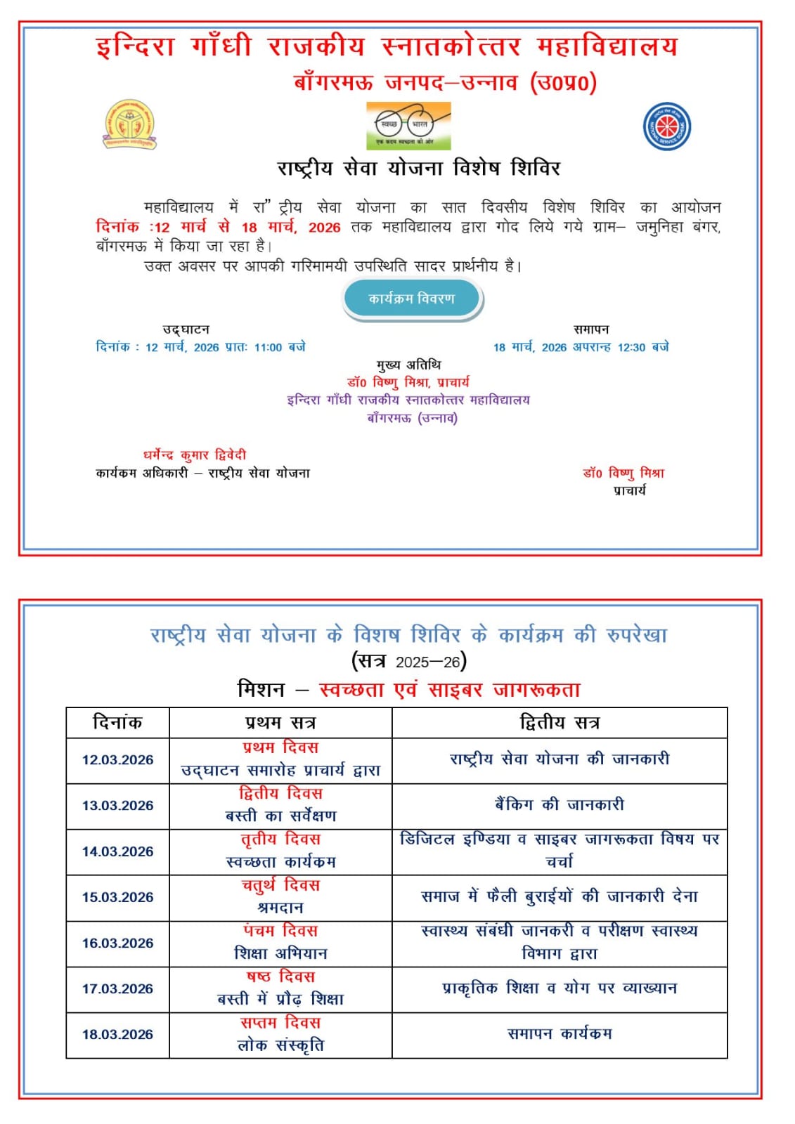NSS Seven Day Special Camp: 2025-26